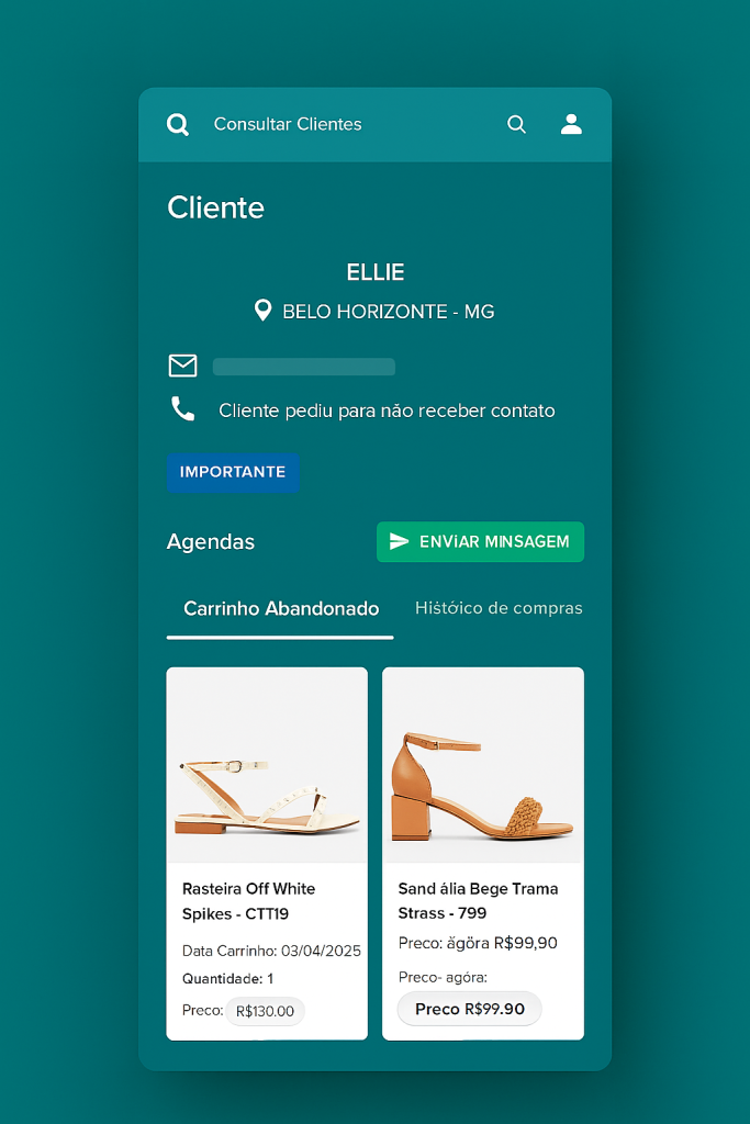 Recupere vendas com a agenda de Carrinho Abandonado e alcance clientes que deixaram produtos no carrinho e aumente suas chances de conversão.